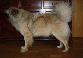 Celia er nok slappere i fisken etter å hatt kull før, så magen viser lettere. Anaya er usedvanlig stram i fisken også ;) Derfor jeg røntga, blei så usikker på om der var noe. Ser ikke hun har termin om ei uke å der minst er 5stk!